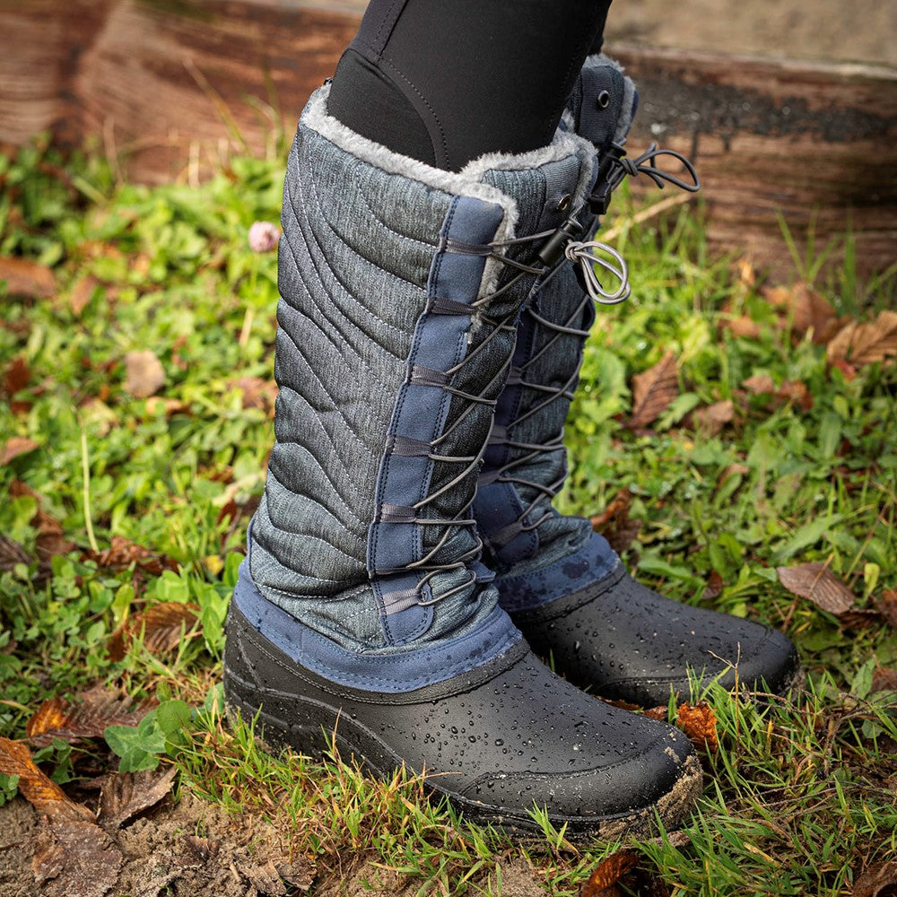 Thermostiefel mit wasserdichtem Fuß, ausgestattet mit einem Reißverschluss hinten für einfachen Einstieg, einer elastischen Schnürung vorne und gefüttert mit einem Kunstfellfutter