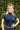 Kurzarmhemd mit Stehkragen mit kurzem Reißverschluss, Ärmeln mit schönem goldfarbenem Aufdruck und einem Equestrian Society-Logo mit Kristallen auf der Brust.