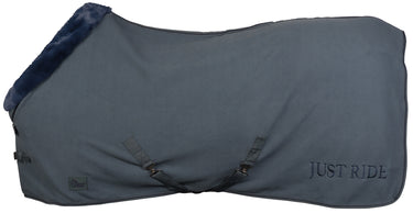 Fleecedeken met een dubbele borstsluiting, kruissingels en een staartlus. De deken heeft een comfortabele hals van kunstbont en een Just Ride borduursel aan de linkerkant.
