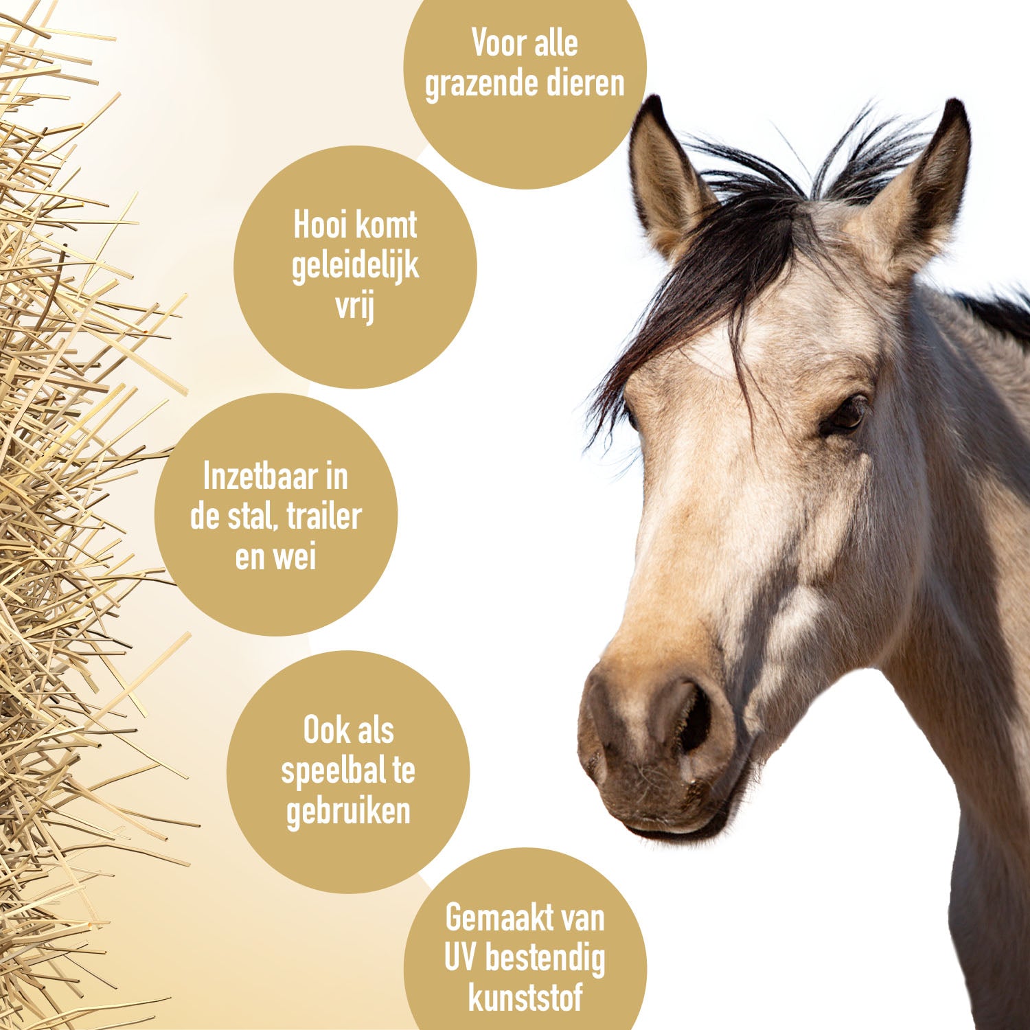 Der Hay Slow Feeder Fun and Flex ist ein einzigartiges Produkt, das Ihr Pferd zum langsamen Fressen anregt und gleichzeitig Langeweile vorbeugt. Der Ball lässt sich leicht mit Heu füllen und kann mit zusätzlichen Leckereien wie Gemüse oder Kräutern ergänzt werden, sodass Ihr Pferd stundenlang beschäftigt ist. Dies ist nicht nur gut für die Gesundheit Ihres Pferdes, sondern auch für sein geistiges Wohlbefinden.