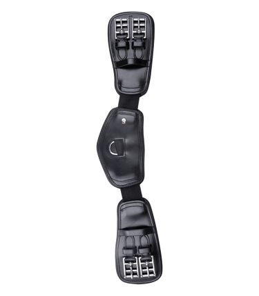Weich gepolsterter, anatomisch geformter Gurt aus hochwertigem Leder. Zwei elastische Einsätze sorgen für zusätzliche Bewegungsfreiheit beim Atmen und wirken dem Gurtzug entgegen. Die drei Ledersegmente sind weich gepolstert und bieten dank ihrer großen Auflagefläche eine hervorragende Druckverteilung. Keine elastischen Gurtenden, mit Edelstahl-Rollschnallen und einem D-Ring.