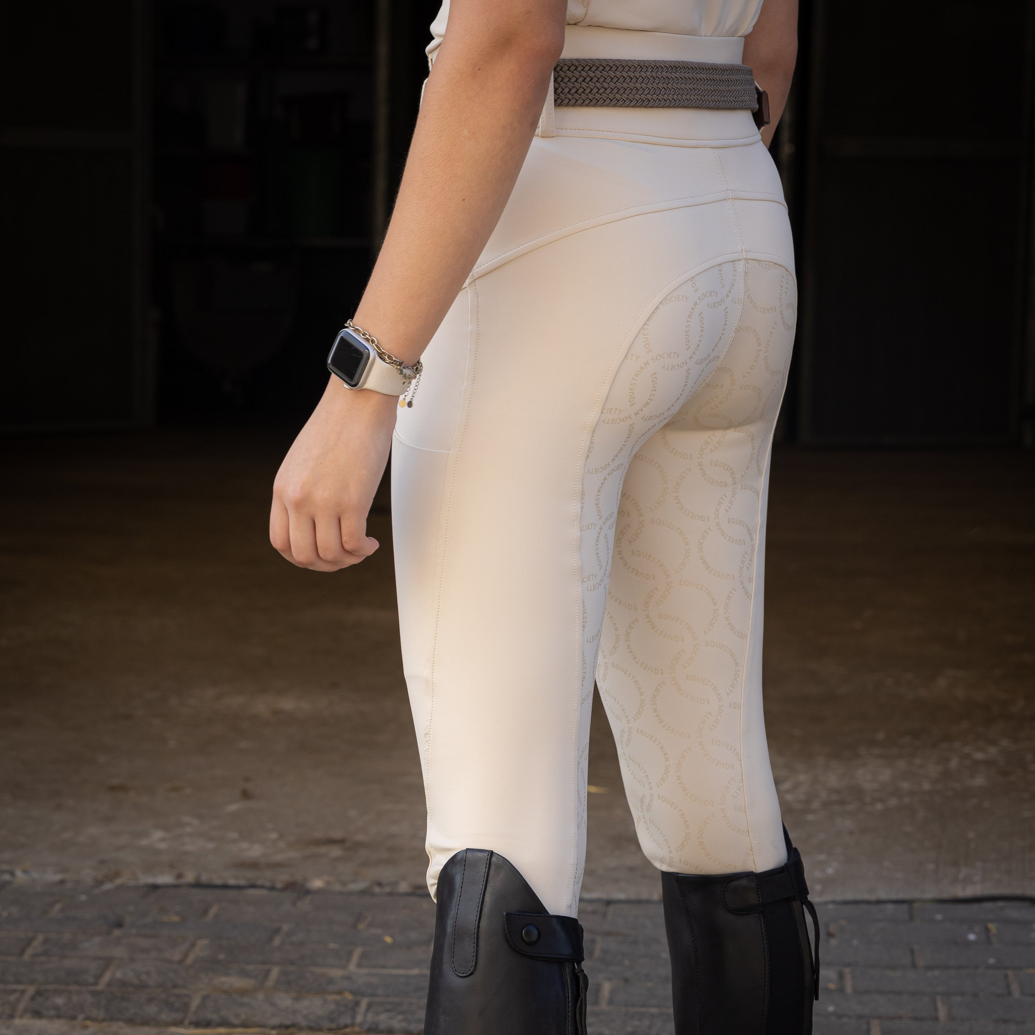 Deze elegante paardrijlegging in een prachtige crèmekleur vormt, in combinatie met shirt EQS Ivory (26100015), de perfecte basis voor een stijlvolle wedstrijdbasis. De hoge tailleband met riemlussen, de nepritssluiting en de sierzakken geven de uitstraling van een klassieke rijbroek, terwijl je toch geniet van het ultieme comfort van een legging.