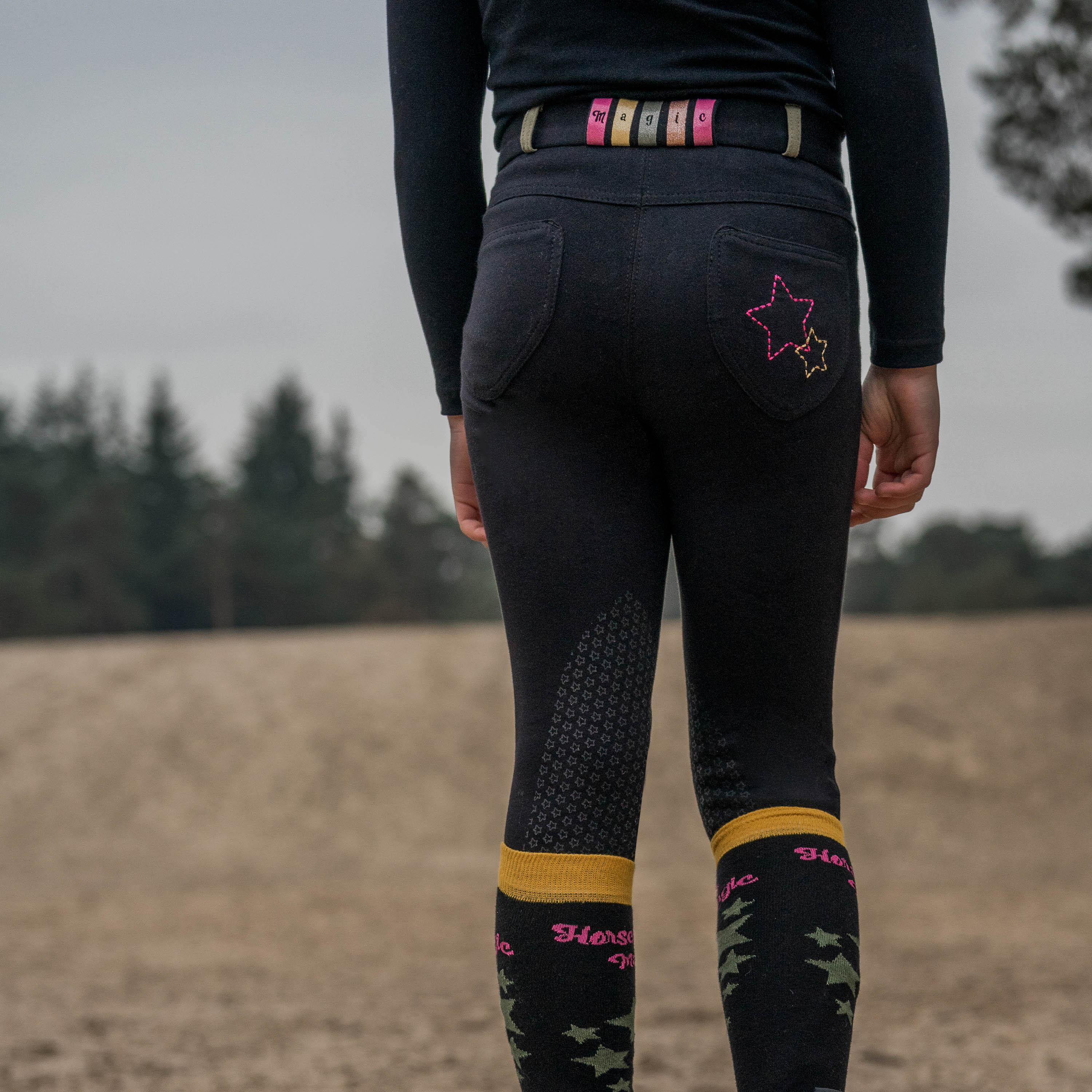 Die Ola Slim Fit Reithose verfügt über Silikon-Kniebesätze sowie zwei Vorder- und Gesäßtaschen. Die Reithose ist sehr angenehm zu tragen, da sie größtenteils aus Baumwolle besteht. Produktspezifikationen: Junior-Reithose Slim Fit Modell Zwei Vordertaschen und zwei Gesäßtaschen Kontrastierende Gürtelschlaufen Kontrastierende Stickerei auf den Gesäßtaschen Glitzernder Gummidruck am hinteren Bund Elastischer Knöchelverschluss Silikon-Kniebesätze Material: 95 % Baumwolle, 5 % Elastan
