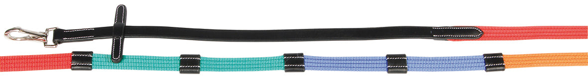 Gurtband mit Lederstoppern und Clipverschluss für einfaches Anbringen. Erhältlich in drei Farben (Orange, Grün und Rot) zum Training und zur Verbesserung der Zügelkontrolle.