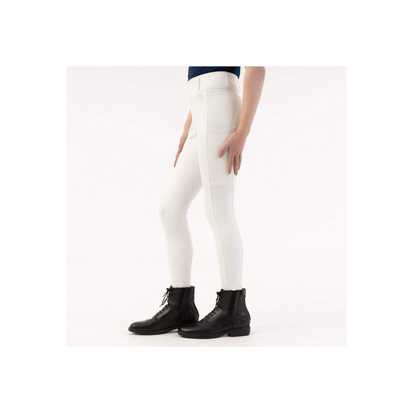 • Subtiel Eevolv-logo van strass-steentjes linksvoor