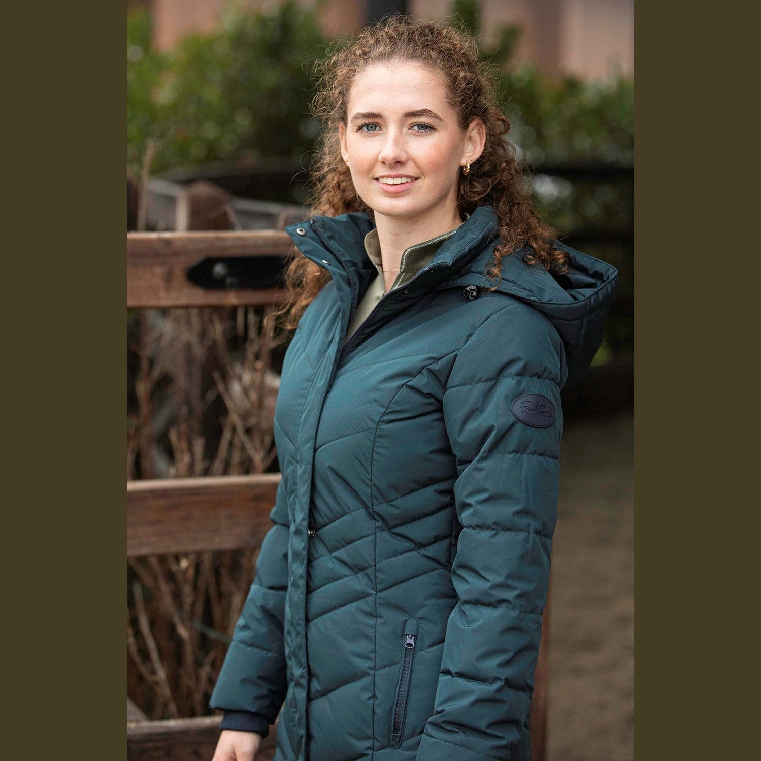 Veste longue déperlante avec fermeture éclair à double sens et boutons-pression, deux poches zippées, deux longues fermetures éclair sur les côtés avec un rabat en dessous pour empêcher la pluie d'entrer et une boucle de suspension.