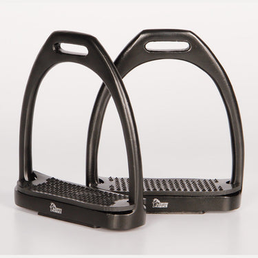Étriers en aluminium de haute qualité. Ils offrent confort et stabilité au cheval et au cavalier. Semelles droites et élastiques (noires).