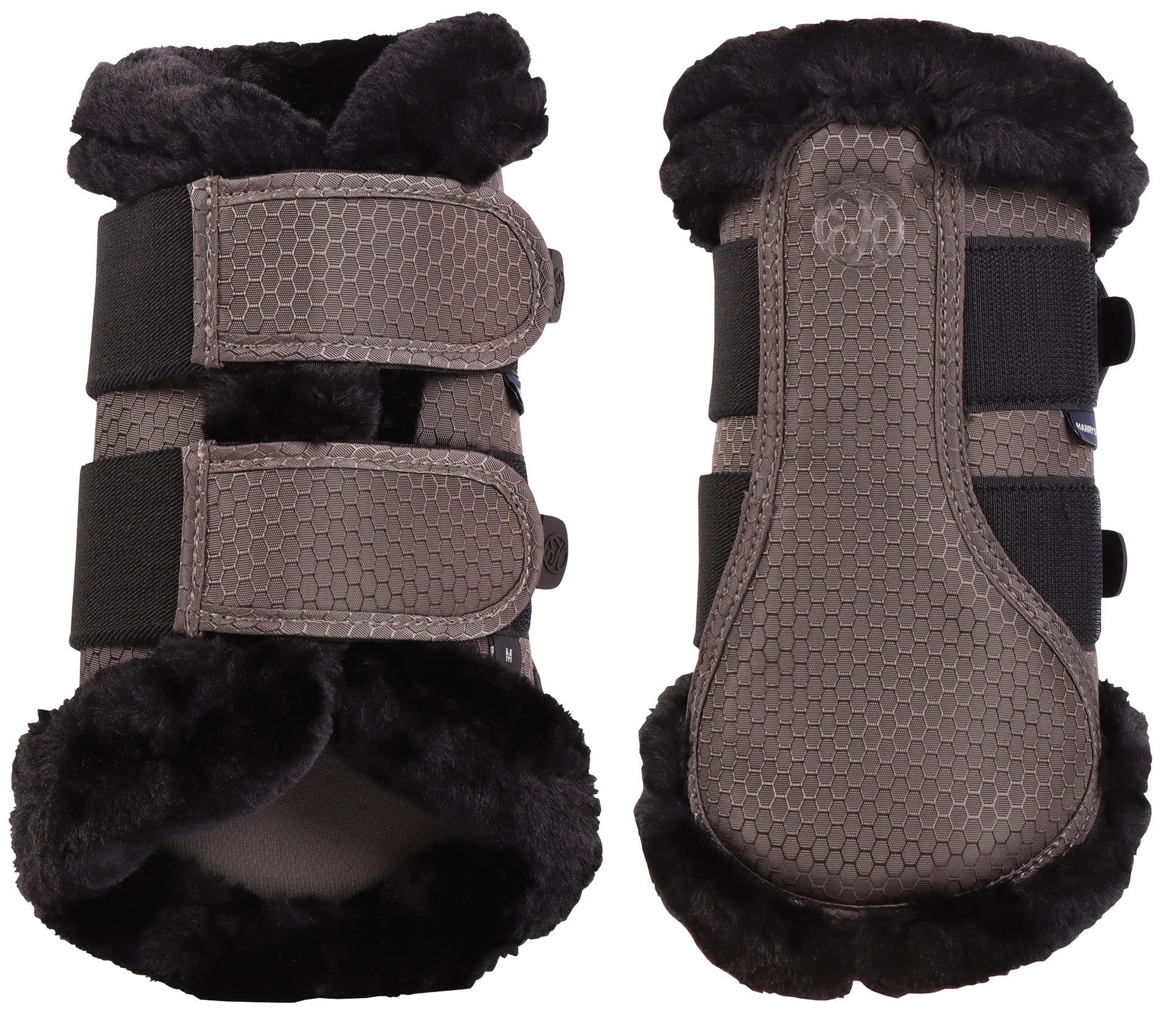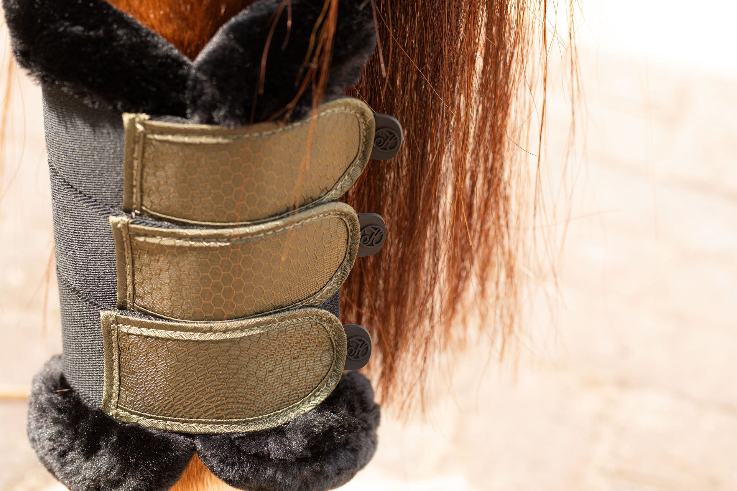 Beenbeschermers met elastische klittenbandsluiting. De binnenzijde is met mesh gevoerd voor een goede afvoer van de hitte en met een kunstbont sierrand voor een luxe uitstraling. Door de optimale pasvorm heeft het paard veel bewegingsvrijheid. De beschermers kunnen in de wasmachine op 30 graden gewassen worden.
