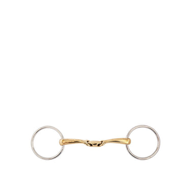 Le mors de filet à olives double brisure Soft Contact est fabriqué en Cuprigan massif avec des anneaux en acier inoxydable. Le Cuprigan est un alliage composé de 89% de cuivre, 7% d'aluminium, 3% de fer et 1% de zinc. Le processus d'oxydation du matériau dégage une odeur et un goût agréables. La forme anatomique suit la forme de la bouche du cheval, ce qui crée une répartition douce et uniforme de la pression. La combinaison de la forme et de la composition unique du Cuprigan stimule le processus de mastication et la production de salive, ce qui permet d'établir une connexion agréable avec la bouche sensible du cheval. L'embout buccal a une épaisseur de 14 mm et les anneaux de mors ont un diamètre de 65 mm.