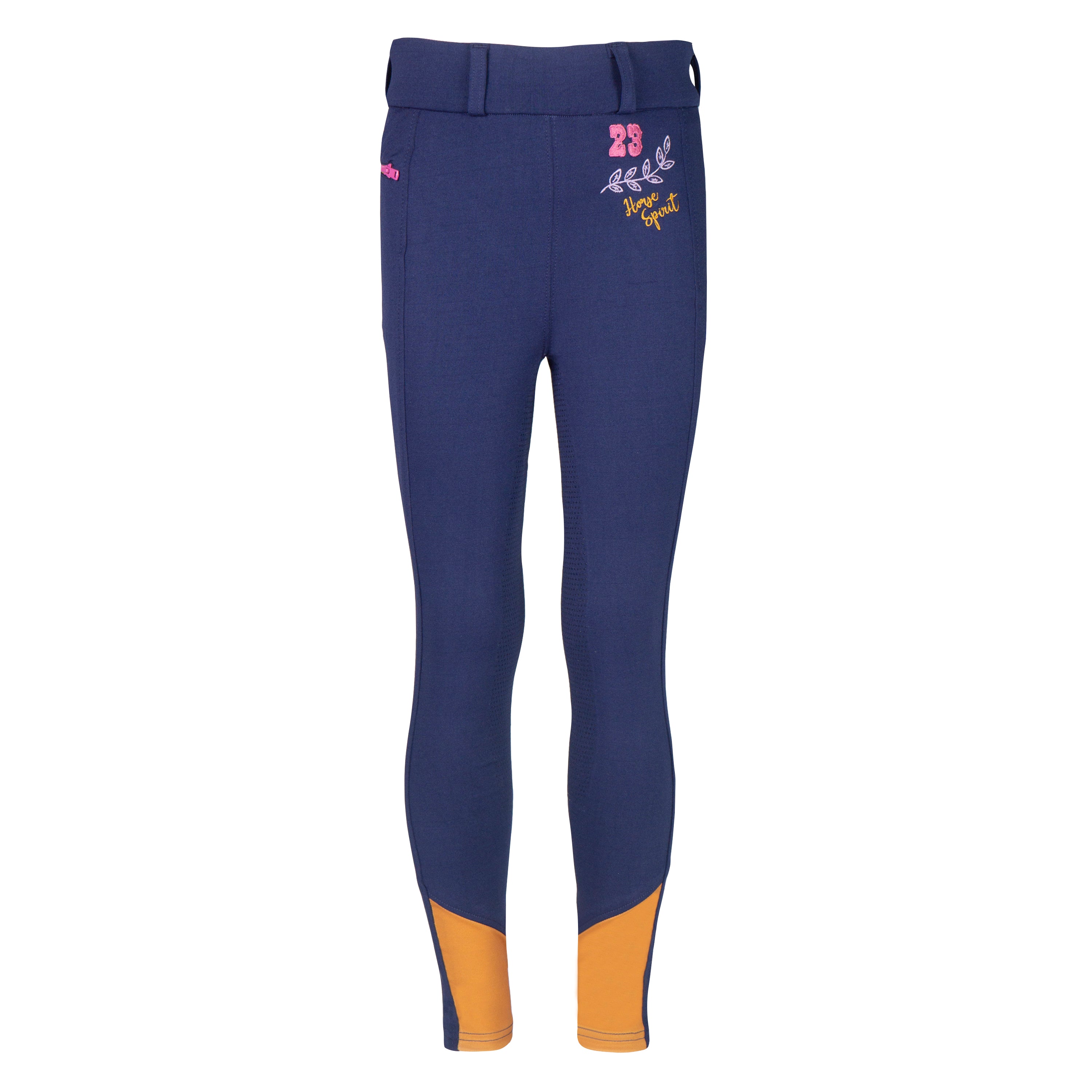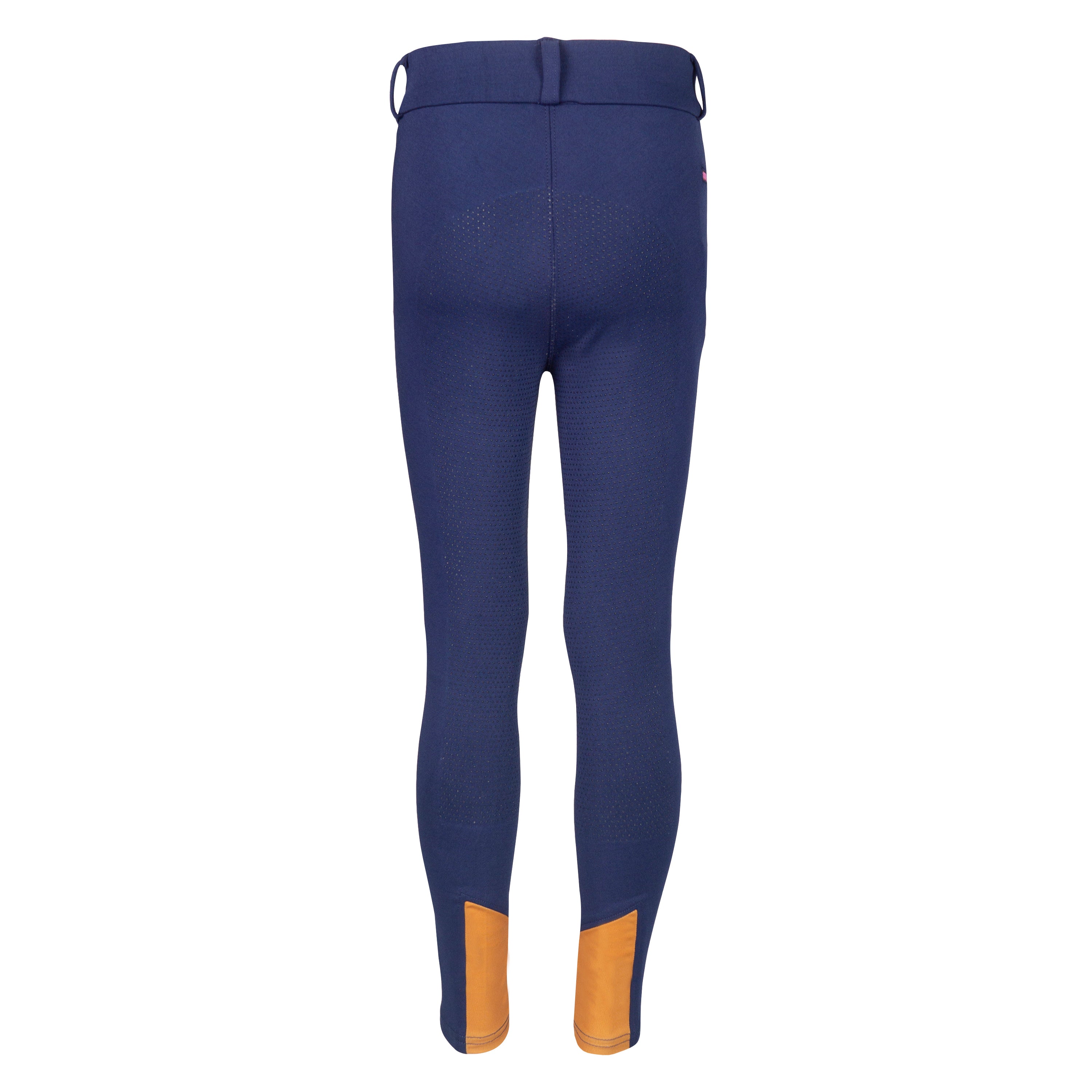 Leggings d'équitation junior avec taille élastiquée et poche avant zippée suffisamment profonde pour un téléphone portable. Caractéristiques : Taille entièrement élastiquée, poche avant zippée suffisamment profonde pour un téléphone portable, motifs variés sur le devant et la cuisse, empiècements élastiques aux chevilles de couleurs contrastées, assise entièrement en silicone. Composition : 90 % polyester, 10 % élasthanne, 360/380 g/m².