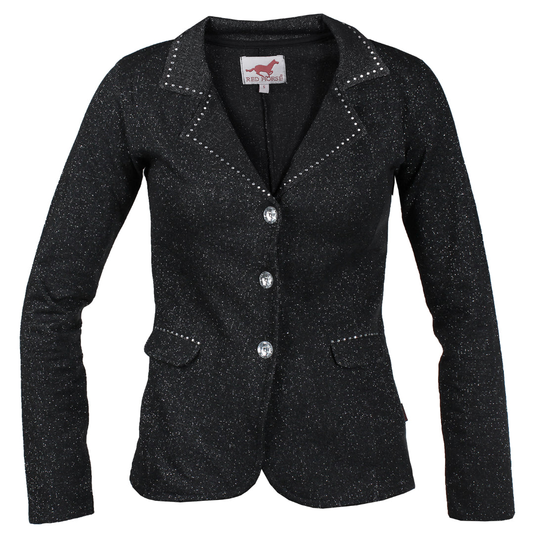 Veste de compétition en tissu pailleté. Caractéristiques du produit : Finition strass au col et aux poches. Boutons strass sur le devant. Composition : 90 % coton, 10 % lurex.
