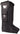 Sac en forme de botte avec une double fermeture éclair sur le devant. Il comporte également un petit compartiment fermant par un bouton-pression (par exemple pour les éperons). Deux poignées en haut du sac peuvent être reliées par un morceau de cuir fixé à une seule bande Velcro.