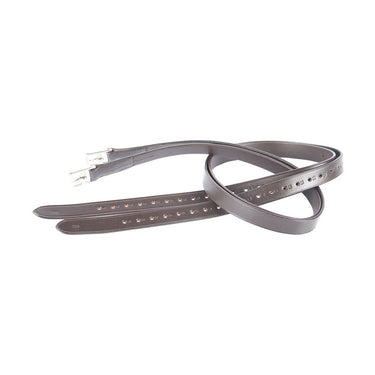 Étrivières en cuir avec boucles argentées. Les étrivières sont renforcées de nylon au niveau des boucles.