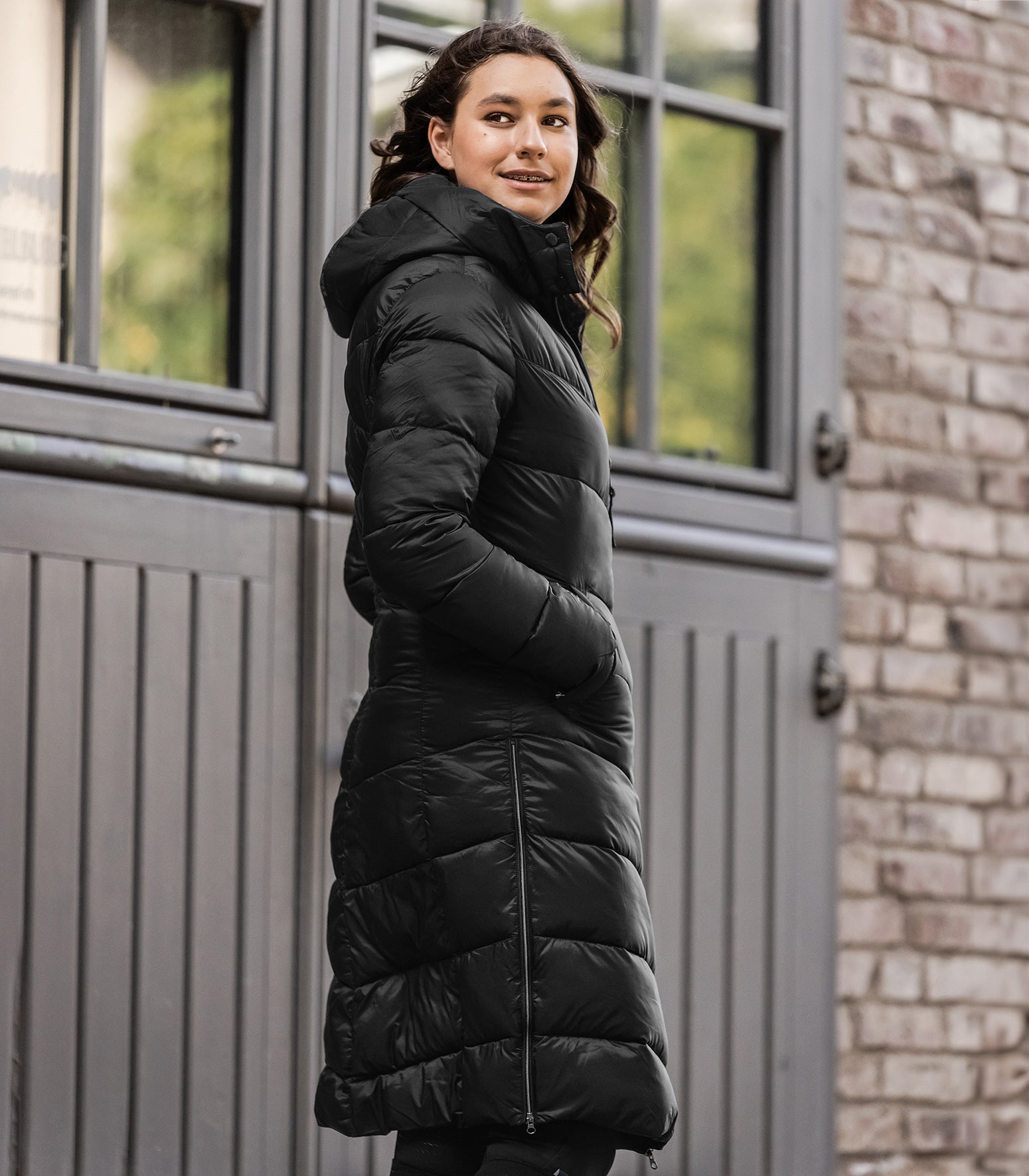 - Capuche amovible pouvant être fermée par des boutons-pression et fixée dans le dos