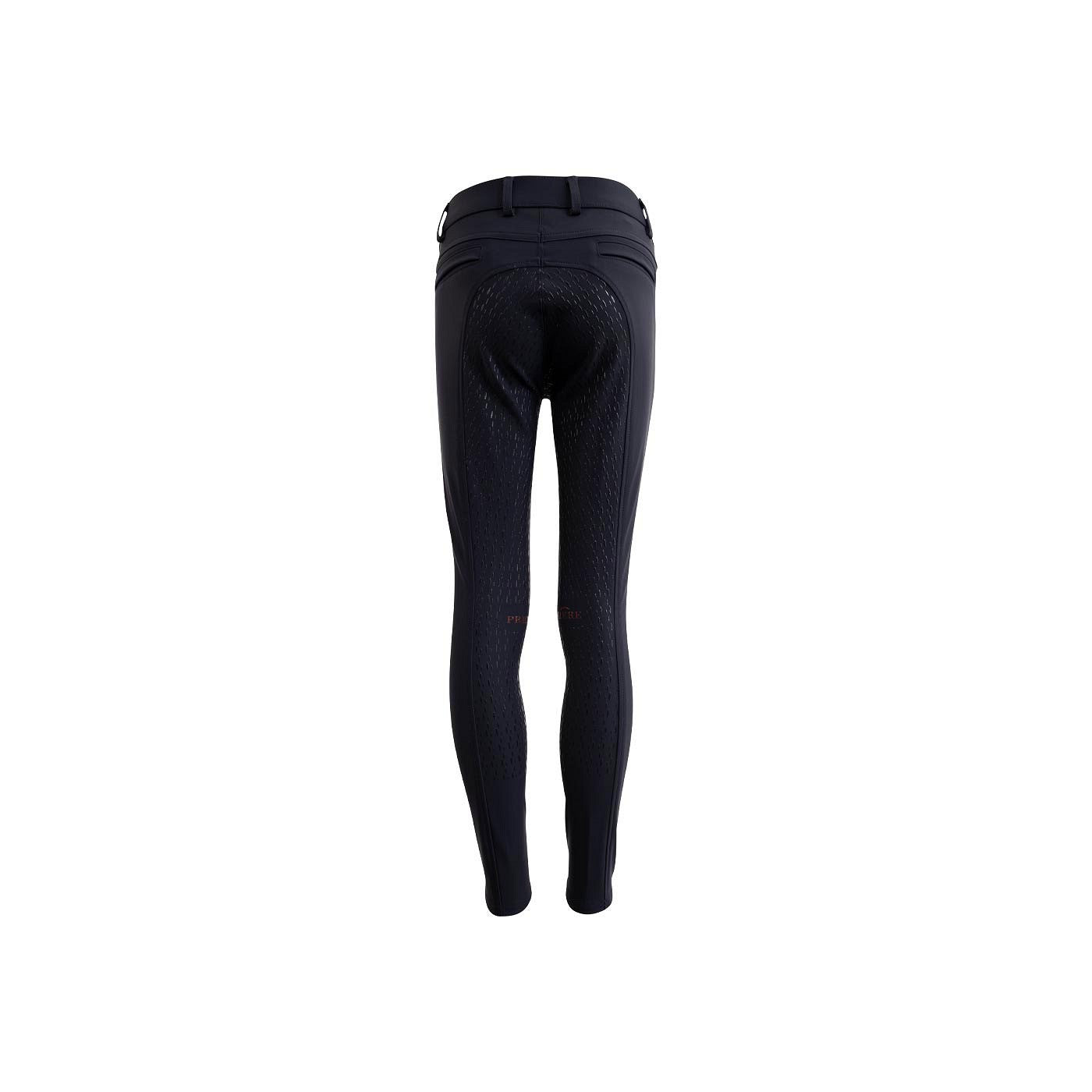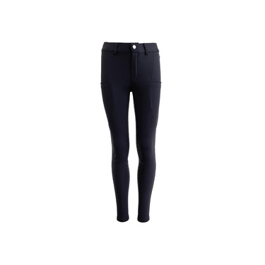 Le full grip sur l'assise offre une adhérence supplémentaire en selle. Les poches profondes sur la cuisse peuvent facilement contenir de petits objets, tels que des friandises (pour chevaux) ou votre téléphone portable. À l'arrière, deux poches décoratives subtiles ajoutent un peu de forme et une touche esthétique. L'extrémité élastique de la jambe s'ajuste parfaitement à vos bottes et est confortable.