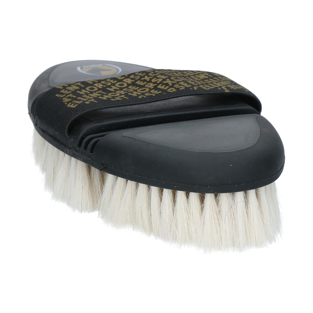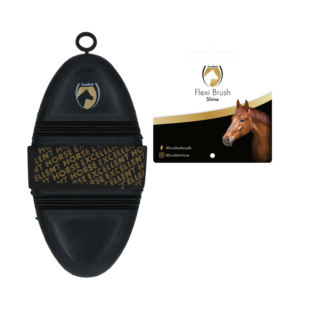 La brosse Excellent Horse Flexi Brush Shine élimine en douceur la poussière et le sable, laissant le pelage brillant. Ses poils de chèvre ultra-doux sont parfaits pour les chevaux tondus et les chevaux à la peau sensible. Son extrémité flexible assure une prise en main confortable et épouse parfaitement les formes du cheval.
