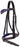 Bride en cuir avec passepoil brillant sur le nez et cristaux colorés sur le frontal et comprend des rênes en toile.