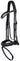 La muserolle large et luxueuse épouse la forme anatomique du mors. Elle est dotée d'une têtière large, spécialement conçue pour l'anatomie, légèrement rembourrée. Elle est également dotée d'un frontal classique suspendu orné de cristaux scintillants.