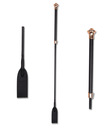 Cravache de saut d'obstacles de haute qualité, poignée et clapet en cuir lisse, avec finitions élégantes. Pour les plus exigeants.