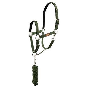 Dit praktische halster is gevoerd bij het kopstuk en de neusriem met zacht nubuck voor optimaal comfort. Daarnaast kan het halster bij de neusriem en aan beide zijden van het kopstuk versteld worden voor de juiste pasvorm. De set is voorzien van een musketonhaak