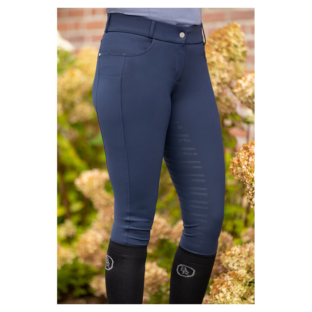 Deze elegante rijbroek is gemaakt van een zachte stof die stevig en stretchy is voor een prettig draagcomfort en een perfecte pasvorm. De rijbroek is ademend, sneldrogend en waterafstotend. De diepe zijzakken zijn perfect geschikt voor een smartphone en daarnaast beschikt de broek over voorzakken afgewerkt met studs. De stretch tailleband is voorzien van riemlussen. Het siliconen zitvlak met het stijlvolle BR -patroon zorgt voor extra grip en een stabiele zit.
