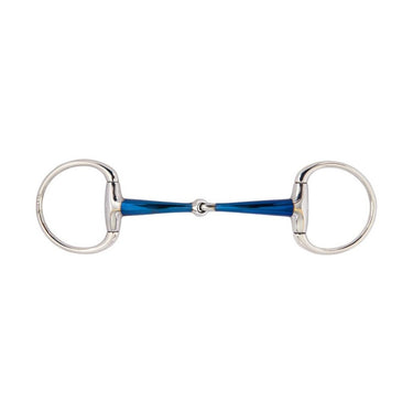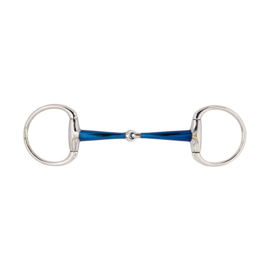 Deze enkel gebroken bustrens is vervaardigd van massief roestvrij stalen ringen en een zacht stalen mondstuk gecombineerd met een sweet iron laagje op het mondstuk (blauw). De sweet iron coating op het mondstuk stimuleert de aanmaak van speeksel. Wanneer dit materiaal reageert met vocht, warmte en lucht zal het oxideren en een zoet smakende oppervlakteroest ontwikkelen. Dit helpt bij de acceptatie van het bit. Uiteindelijk verdwijnt de blauwe kleur, maar de smaak van het oppervlakteroest blijft.