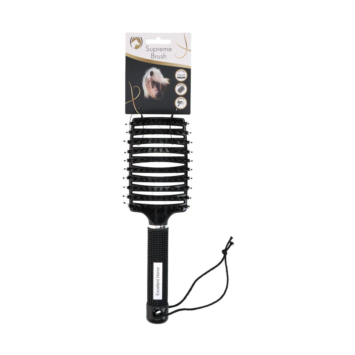De Excellent Hose Supreme Borstel verwijdert moeiteloos alle klitten uit staart en manen, én voorkomt gespleten haarpunten.