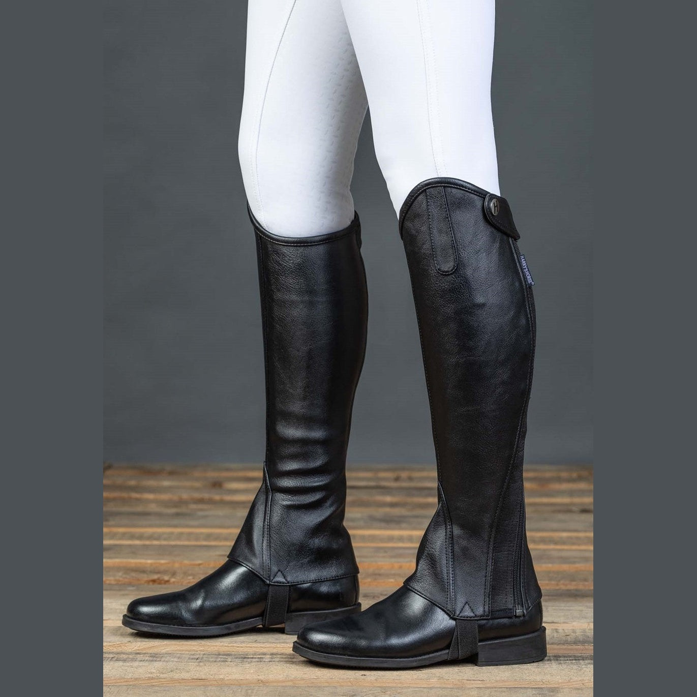 Luxe minichap/ soepele gaiter met elastisch kuitgedeelte. Uitgevoerd met zeer luxe, vernieuwende gedraaide rits voor een optimale pasvorm. Vervaardigd uit hoogwaardige synthetische materialen.