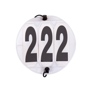 Startnummers rond 9 cm diameter. Verwisselbaar van 000 t/m 999.