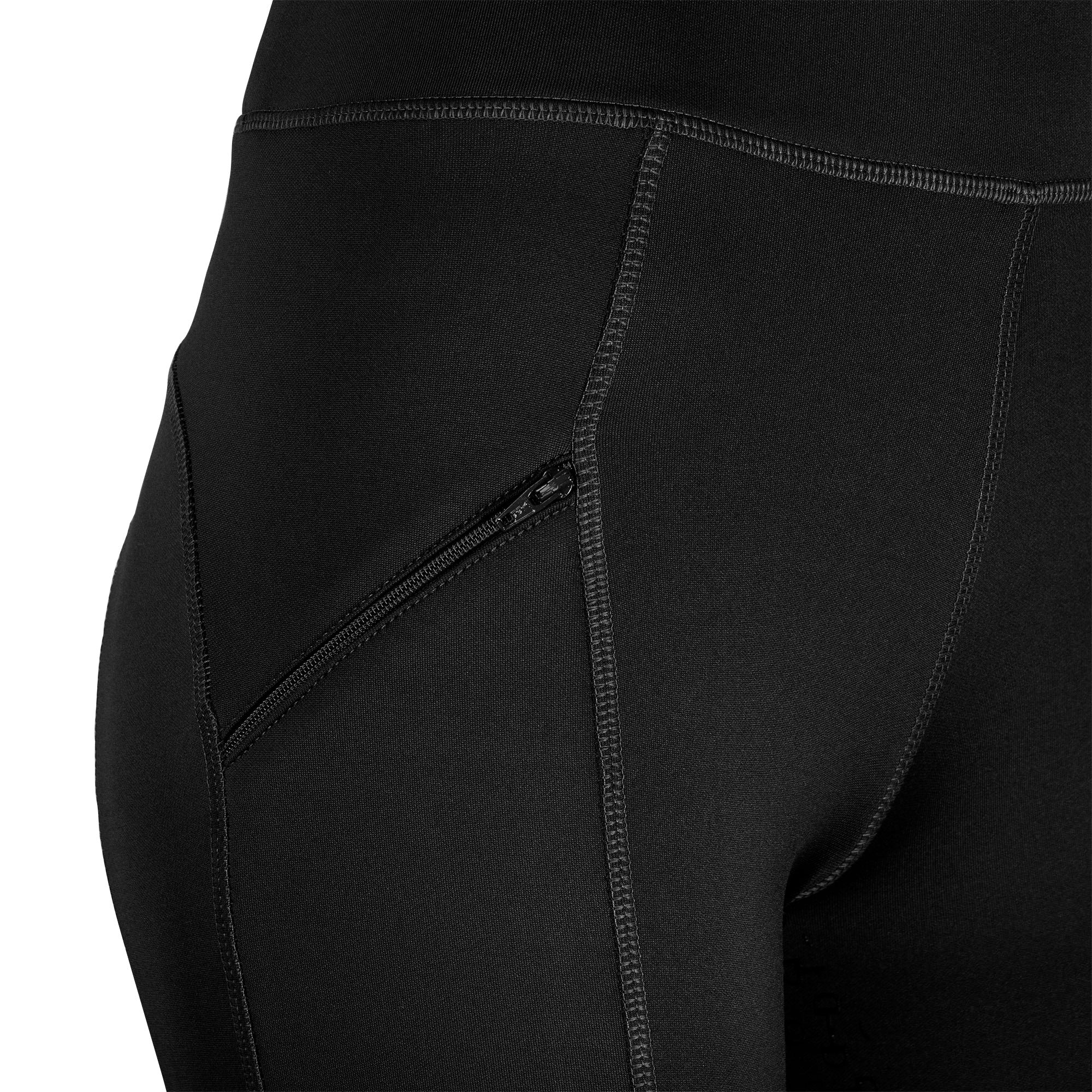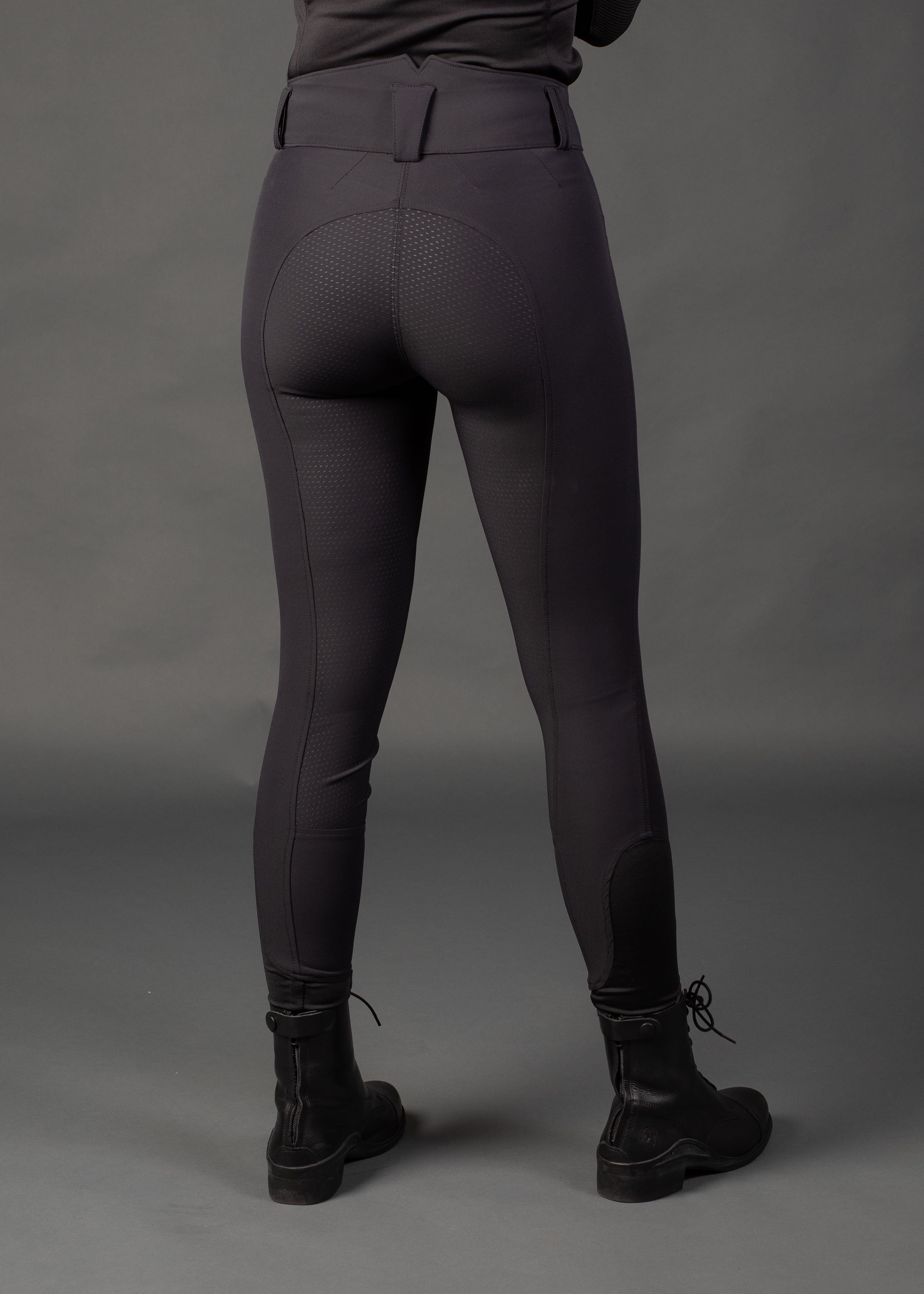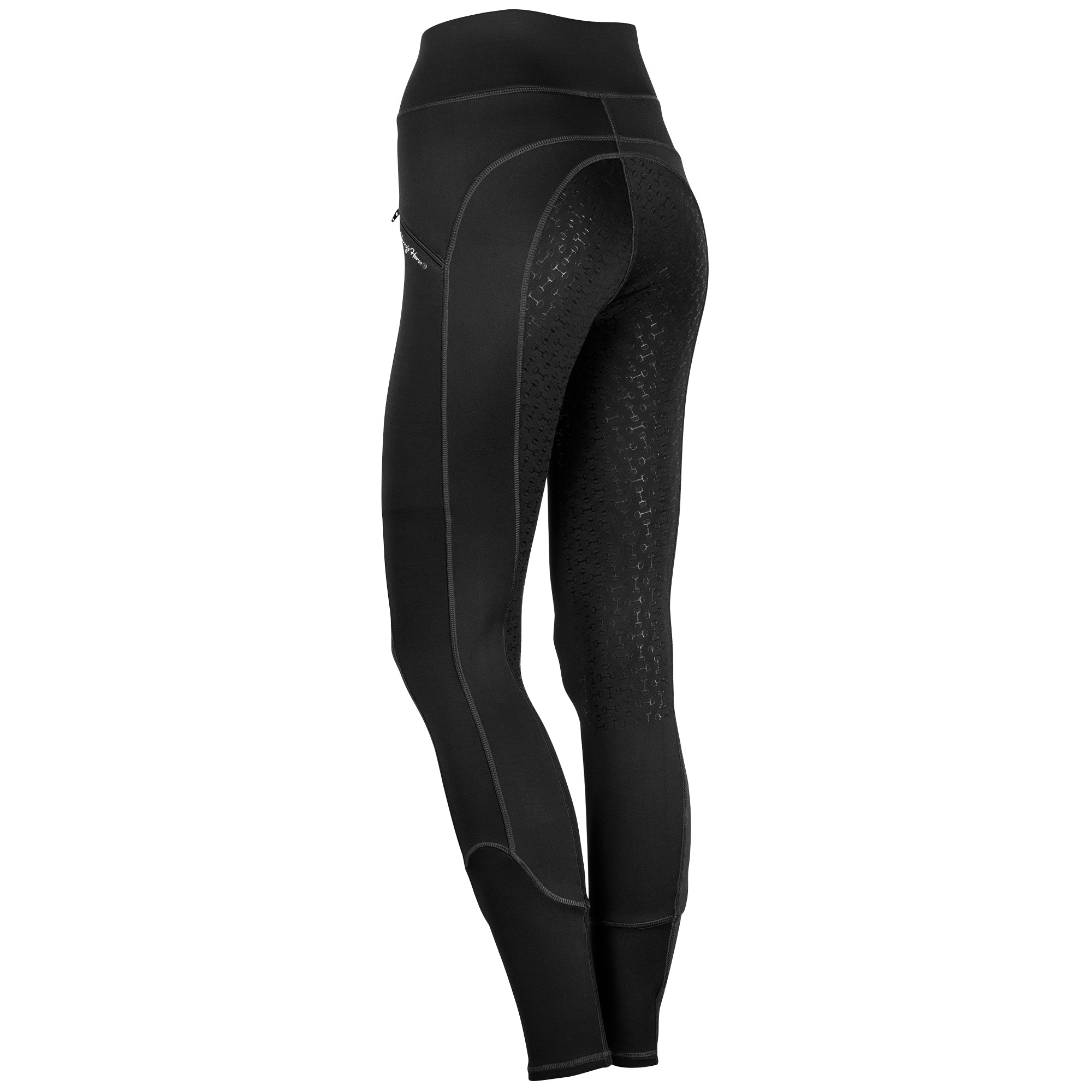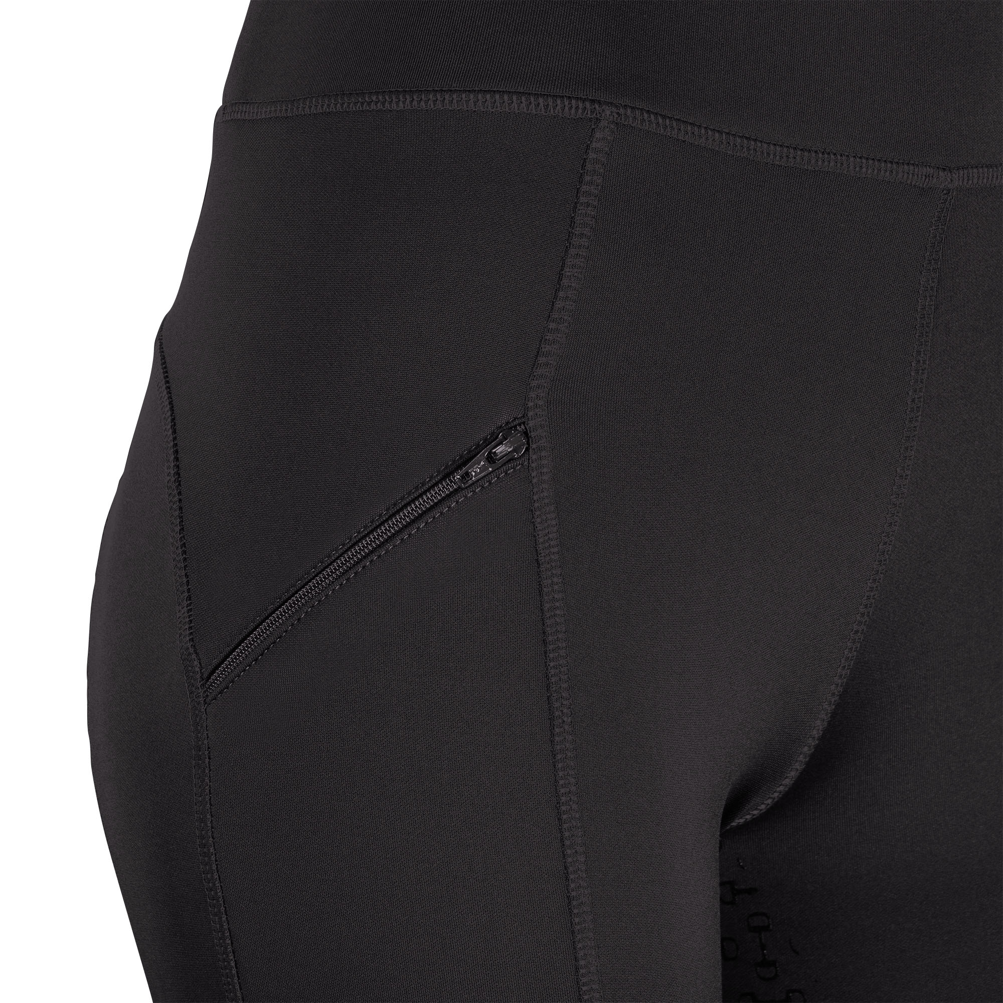 Rijbroek met rondgenaaid zitvlak voorzien van siliconen print voor extra grip in het zadel, twee kontzakken, twee steekzakken en een schuifknoopsluiting en rits, flex legs. Samenstelling: