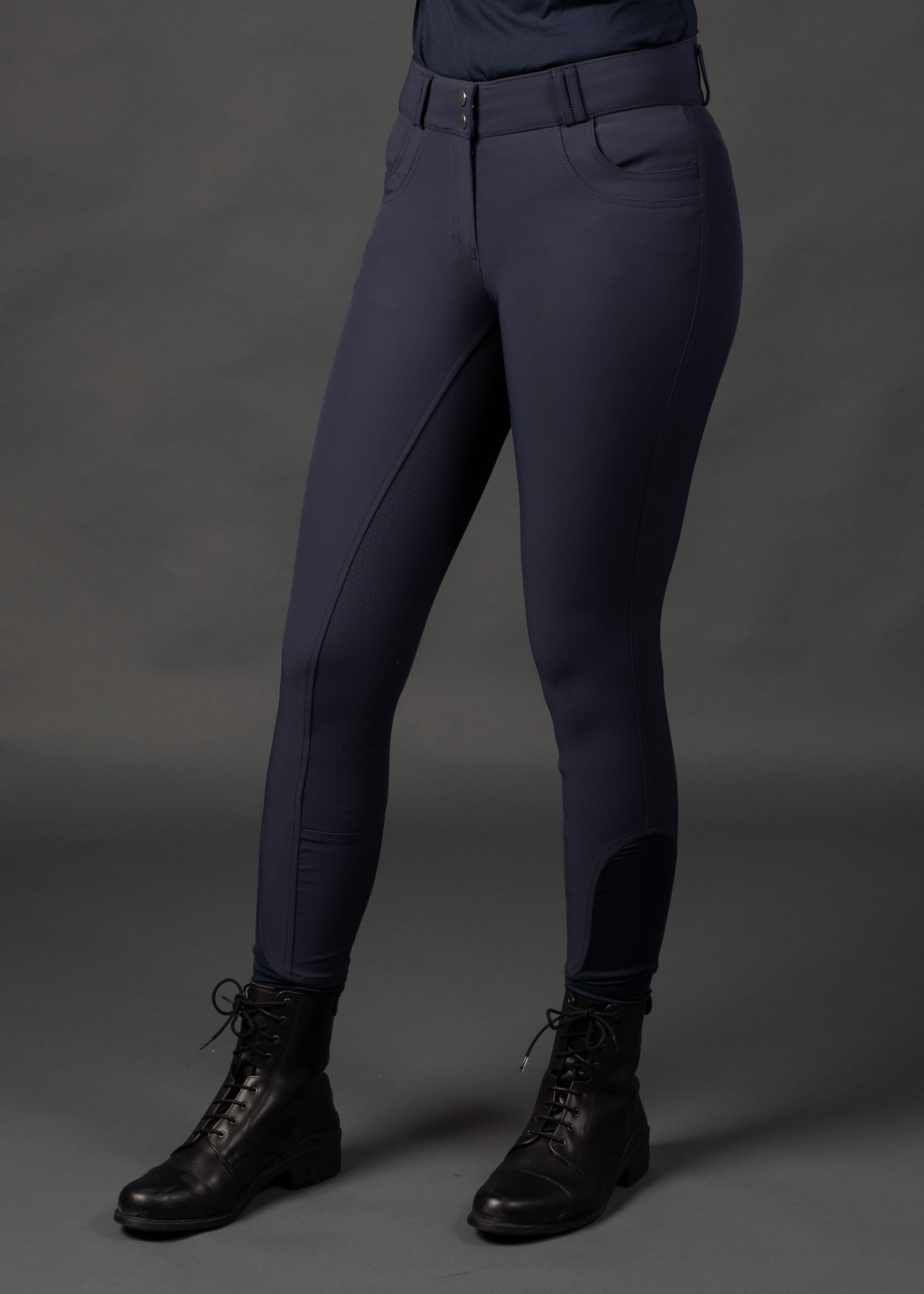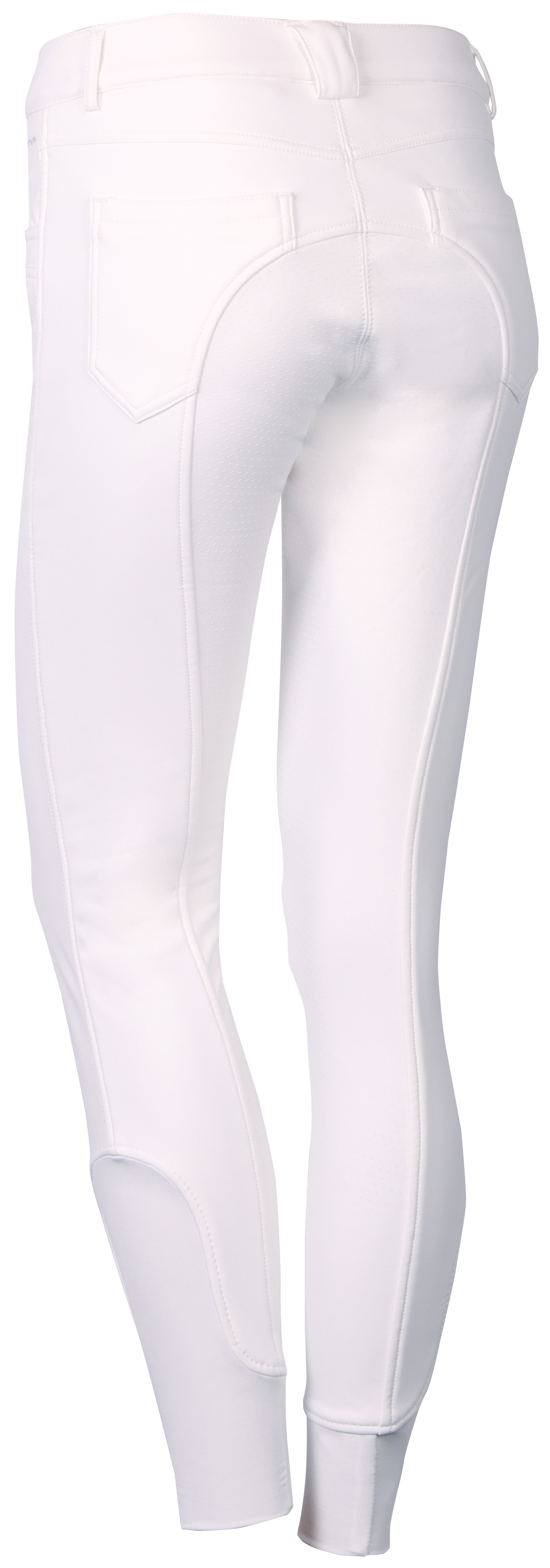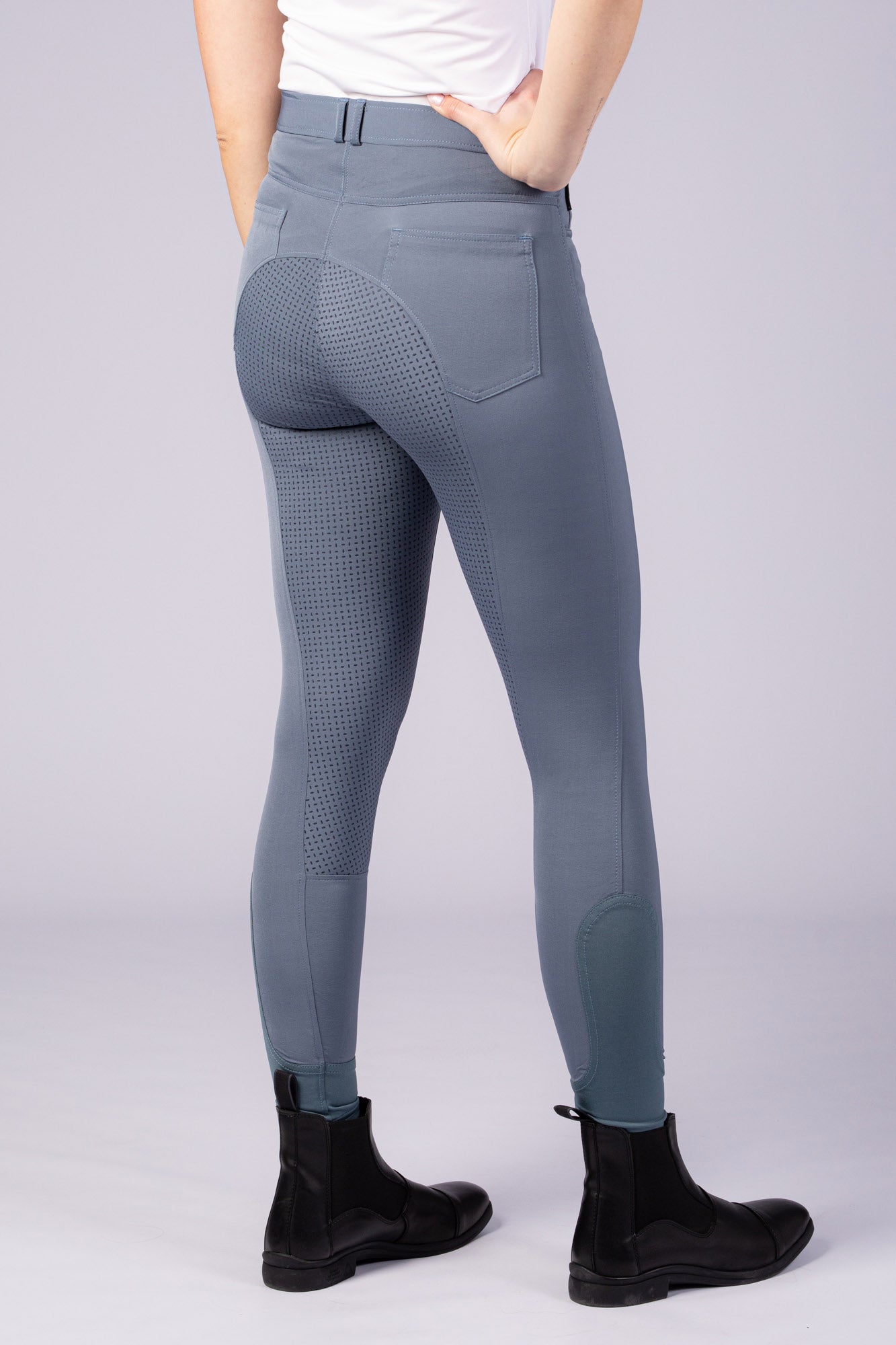Rijbroek met rondgenaaid zitvlak voorzien van siliconen print voor extra grip in het zadel, twee kontzakken, twee steekzakken en een schuifknoopsluiting en rits, flex legs. Samenstelling: