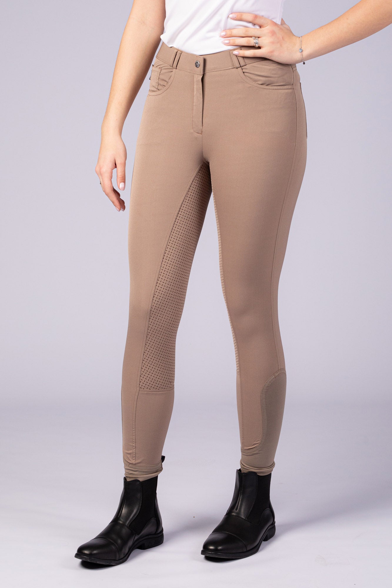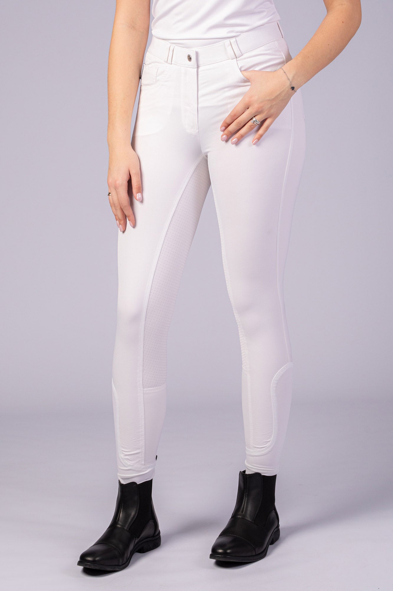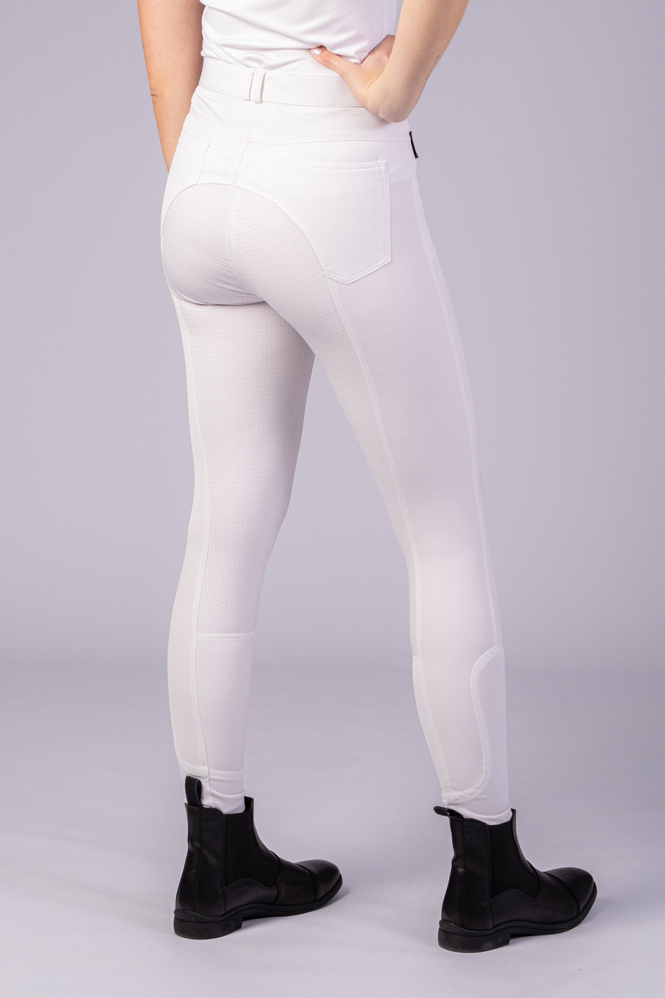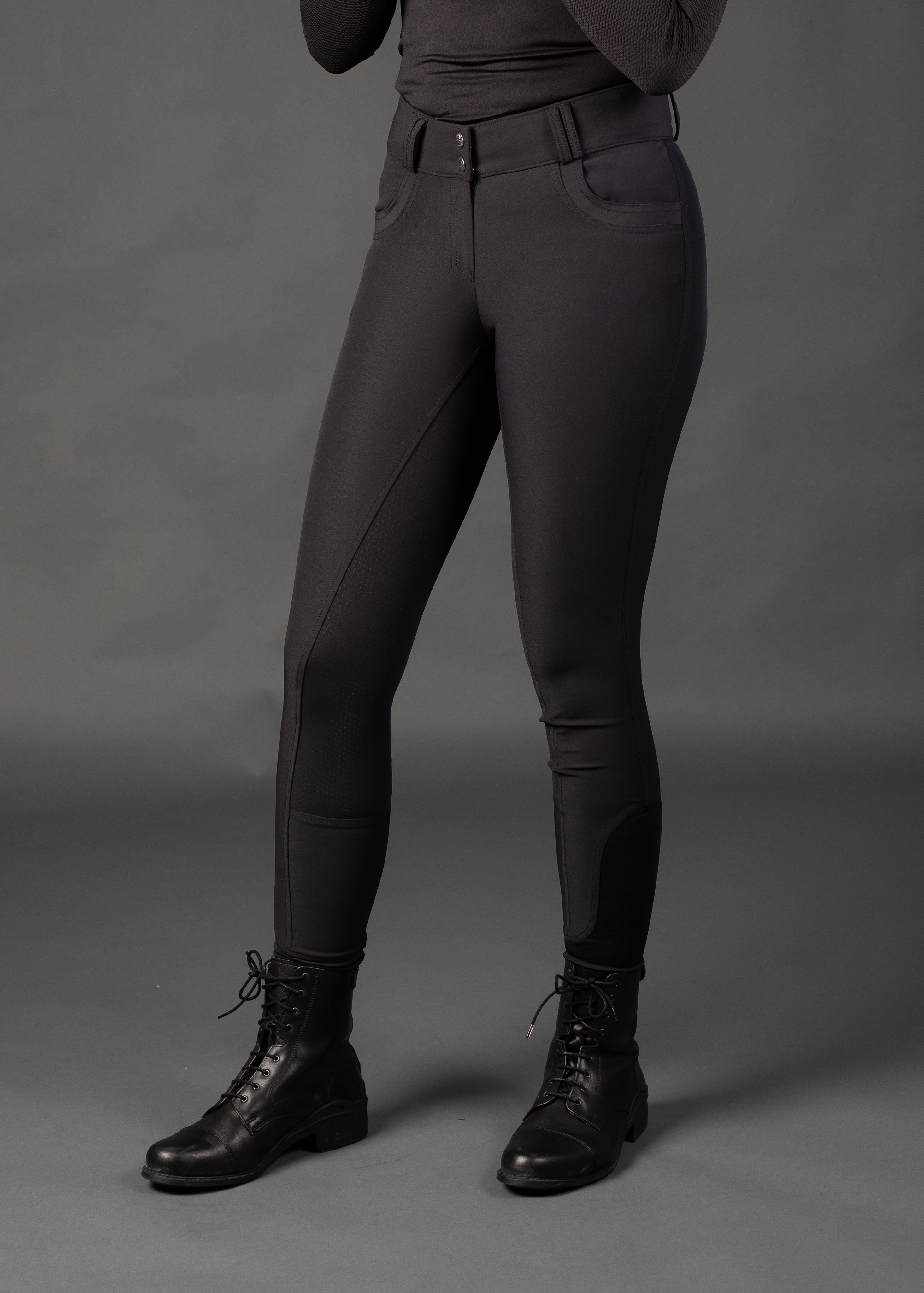 Rijbroek met rondgenaaid zitvlak voorzien van siliconen print voor extra grip in het zadel, twee kontzakken, twee steekzakken en een schuifknoopsluiting en rits, flex legs. Samenstelling: