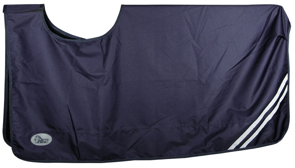 Waterdichte uitrijdeken in dress blues met reflecterende strepen voor optimale zichtbaarheid en veiligheid, met staartlus, voorzien van een fleece voering.