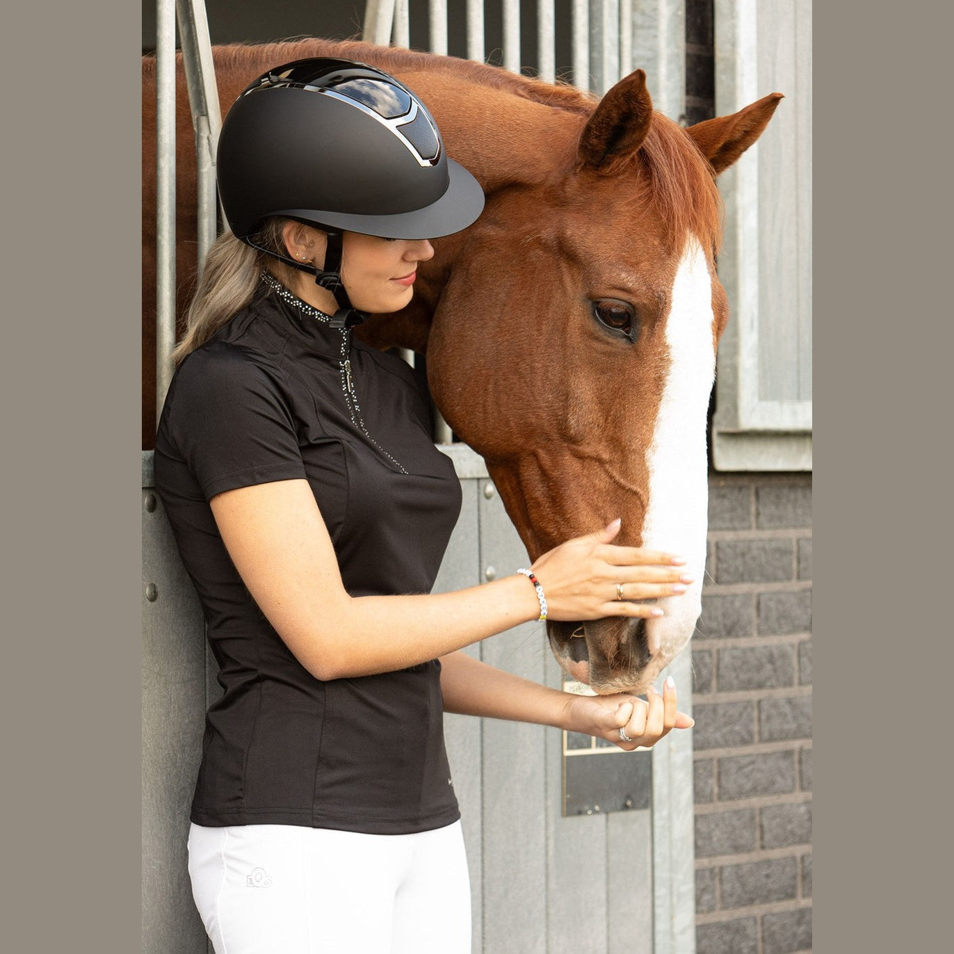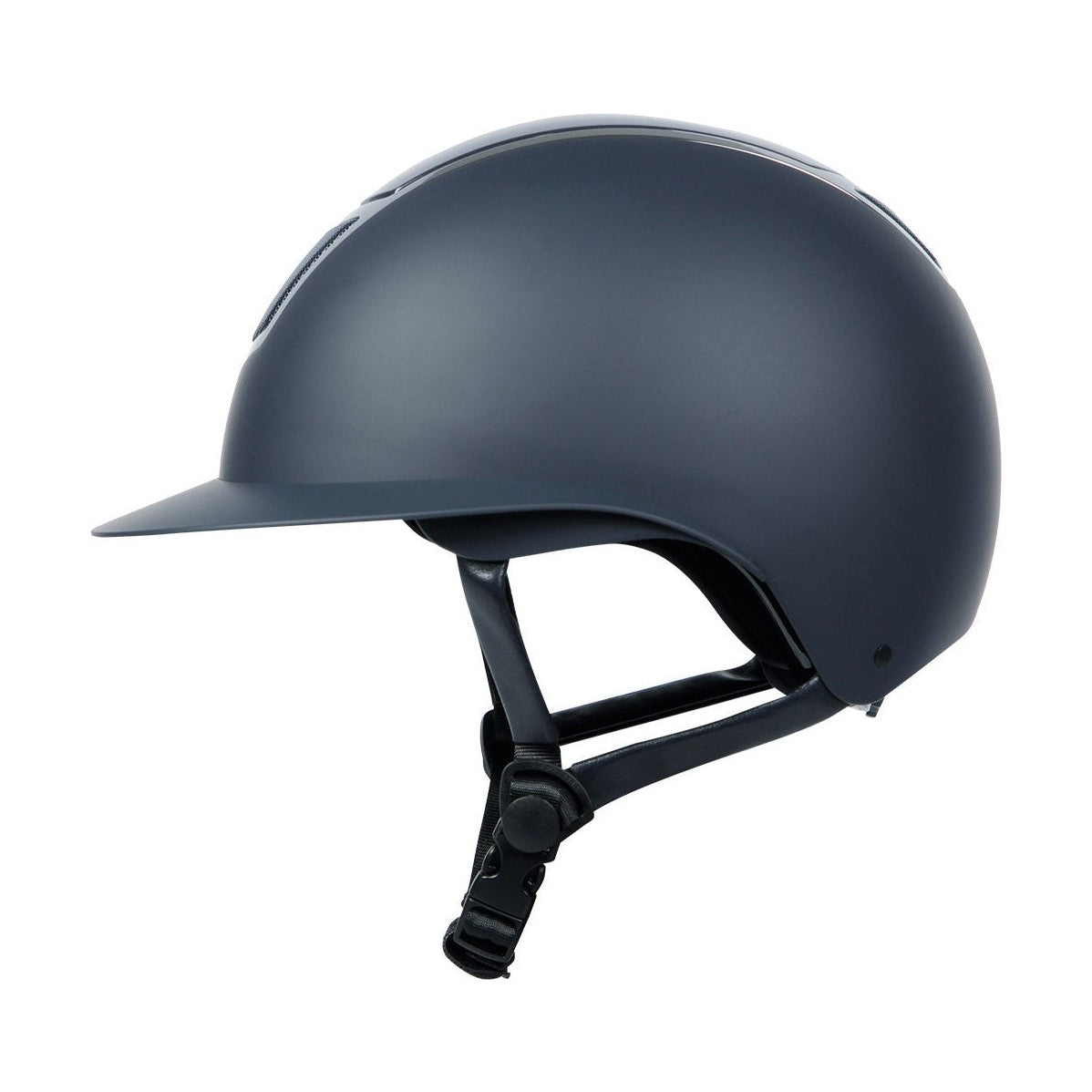 Met een uitneembare en wasbare voering. Eenvoudig op maat te stellen door middel van een draaiknop. Tevens is de helm voorzien van meerdere ventilatiesleuven. De buitenschaal heeft een matte finish en de middelste strook heeft een chique hoogglans afwerking. Dit model heeft een brede klep voor extra bescherming tegen de zon en regen.