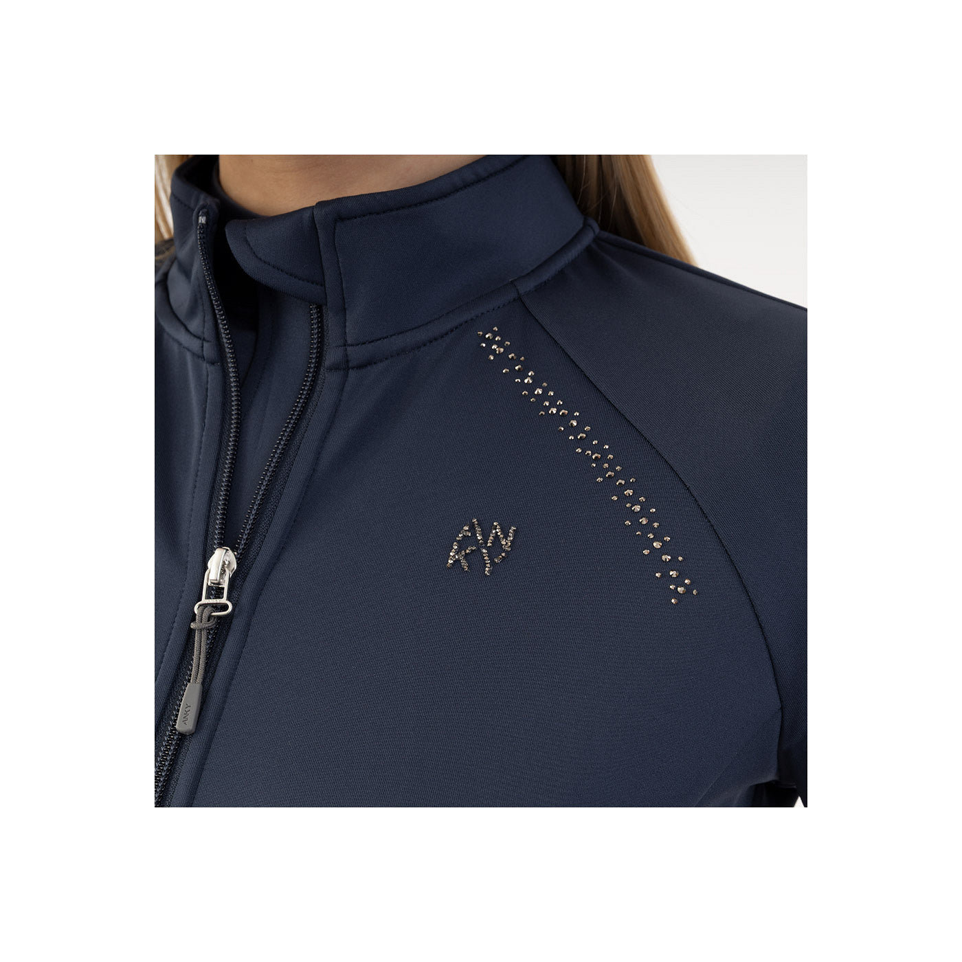 - Artwork van strass-steentjes langs de raglannaden aan de voorzijde