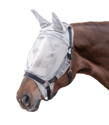 Protection idéale contre les insectes gênants. Le rembourrage en fourrure sur le front prévient les irritations. Espace supplémentaire autour des yeux sensibles. La muserolle est élastique et réglable individuellement. Des attaches velcro au niveau des mâchoires et de la nuque facilitent l'attache au licol. Avec protection UV.